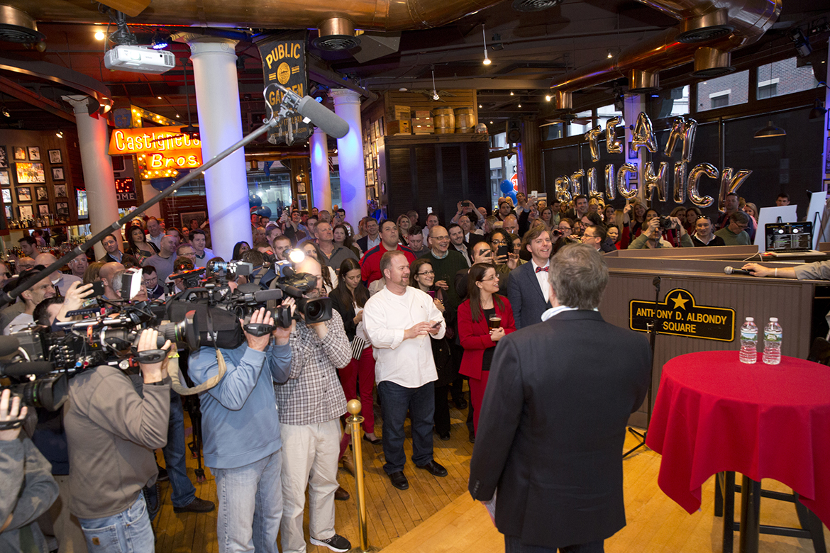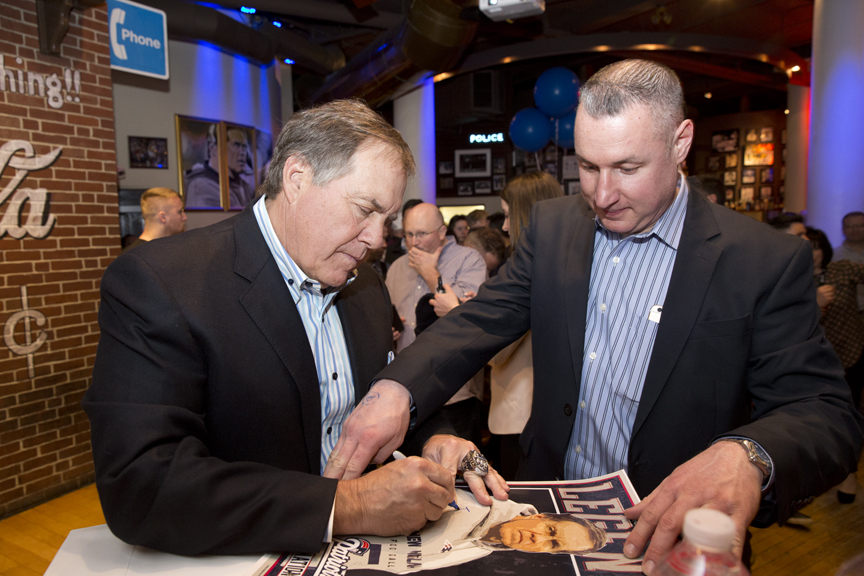 On Thursday, March 31st, 2016, the Bill Belichick Foundation hosted a party at West End Johnnies to celebrate the first year of securing Boston Marathon bibs through the John Hancock Nonprofit Program. Coach Belichick, joined five of the six dedicated runners on Team Belichick for a fun evening of bites, music, and fundraising for the Bill Belichick Foundation.